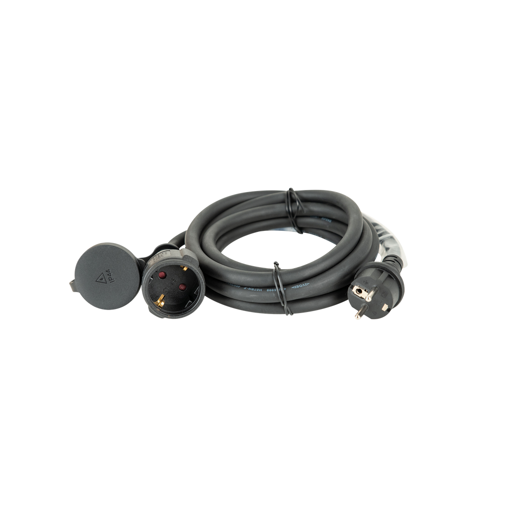Questo cavo di prolunga Schuko H07RN-F 3G2.5 ha una classificazione IP44, il che significa che è protetto dalla polvere e da getti d'acqua. Viene fornito con un terminale di chiusura.