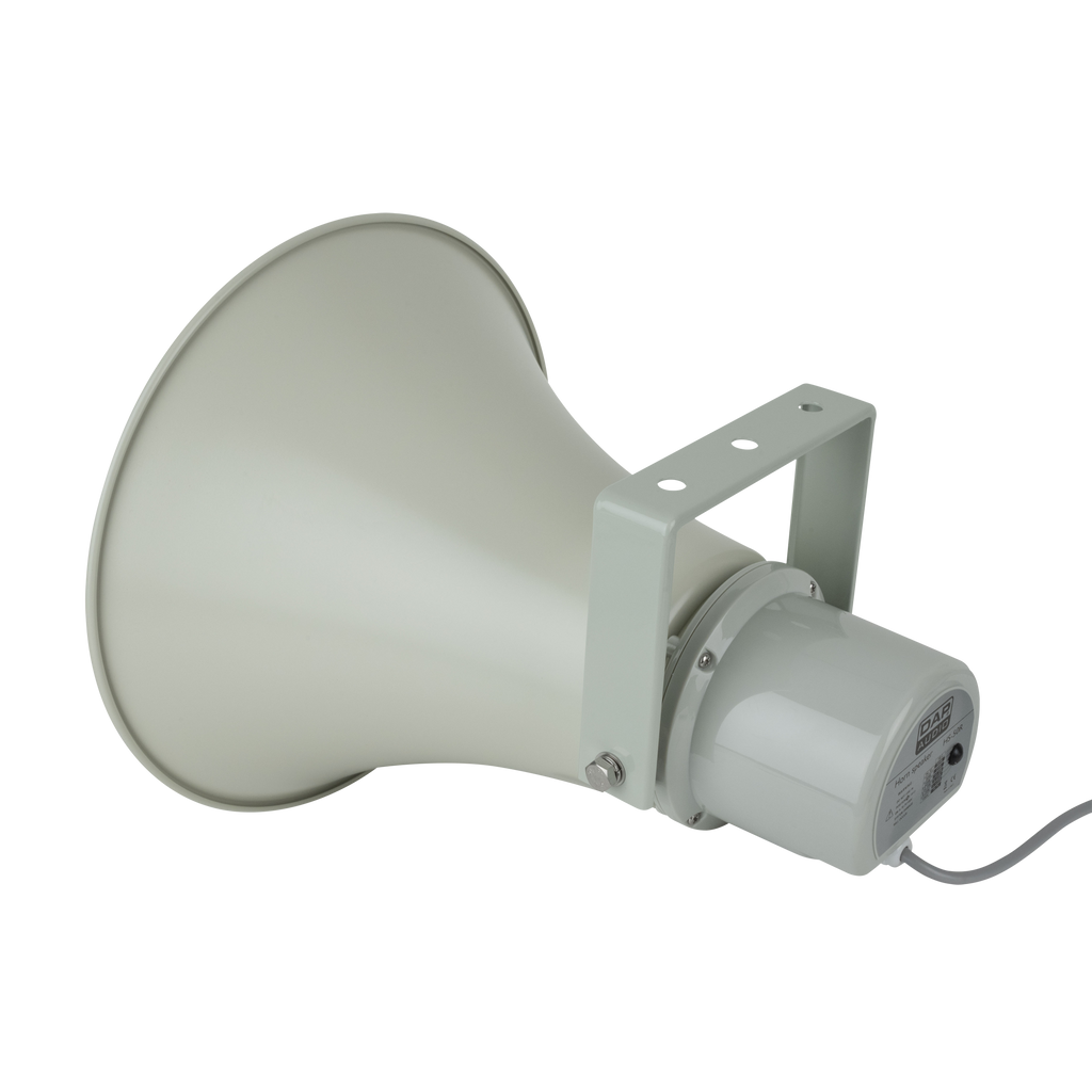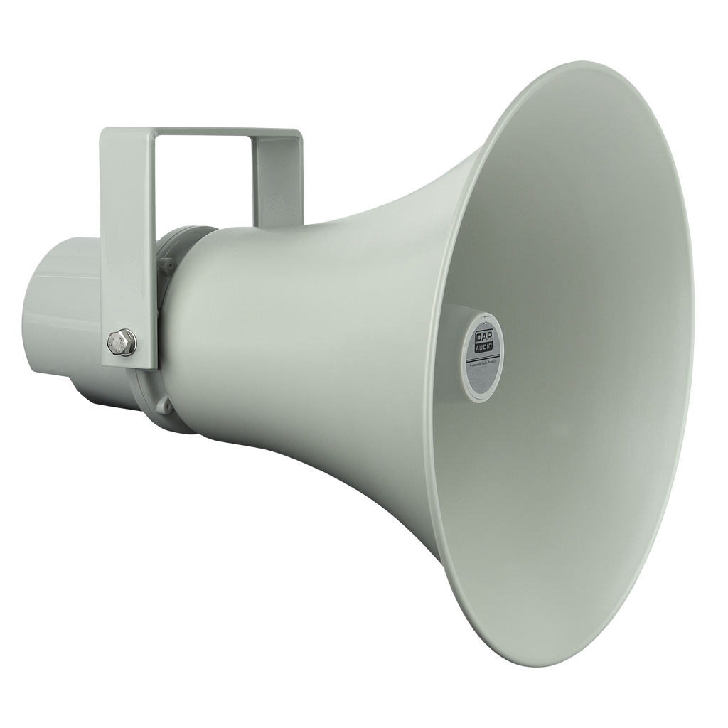 Il DAP HS-50R è un altoparlante a tromba rotonda passivo grigio chiaro da 50 watt adatto per l'indirizzamento pubblico. Questo altoparlante è spesso utilizzato in applicazioni a lunga gittata in grandi sedi come stadi sportivi e distretti commerciali.