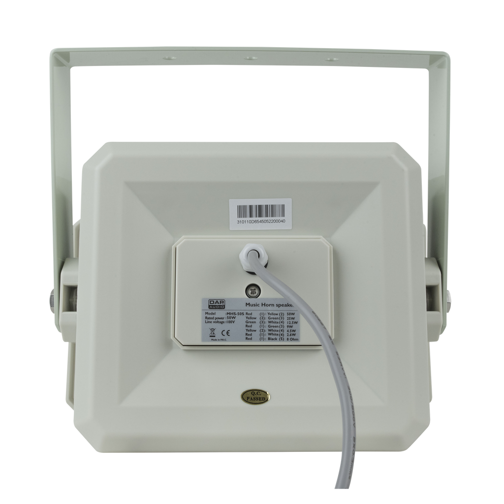 Il DAP MHS-50S è un altoparlante passivo a tromba quadrata da 50 watt adatto per installazioni esterne a 100 V in luoghi pubblici come centri commerciali, terrazze e parchi a tema. Questo altoparlante da installazione grigio chiaro è un sistema a 2 vie con un 6,5 pollici driver basso e un driver alto da 1" per un suono nitido a gamma intera.