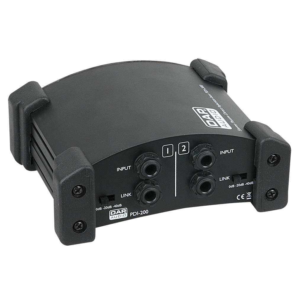 Il DAP PDI-200 è un box diretto passivo a due canali. Converte un segnale HI-Z in un segnale LO-Z. Non hai bisogno di una batteria o alimentazione phantom per questa direct box.