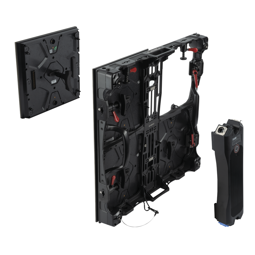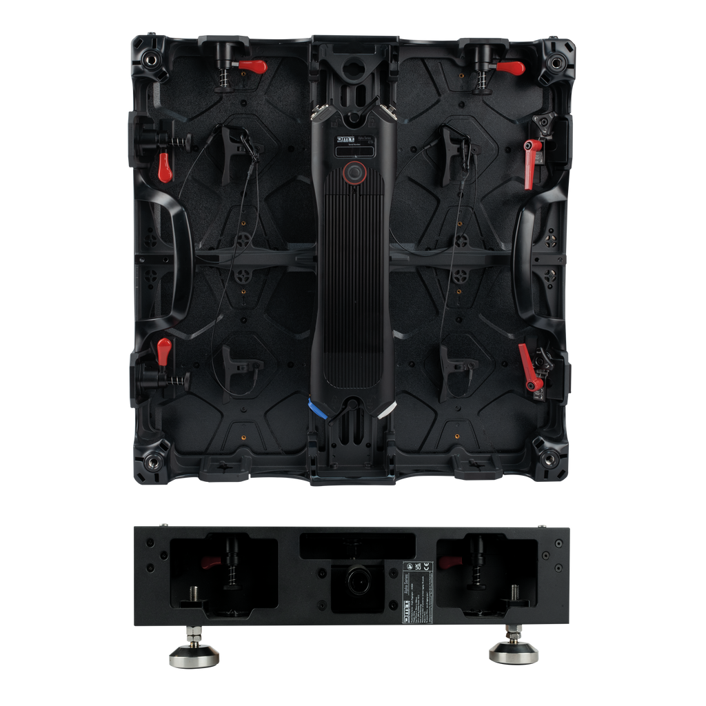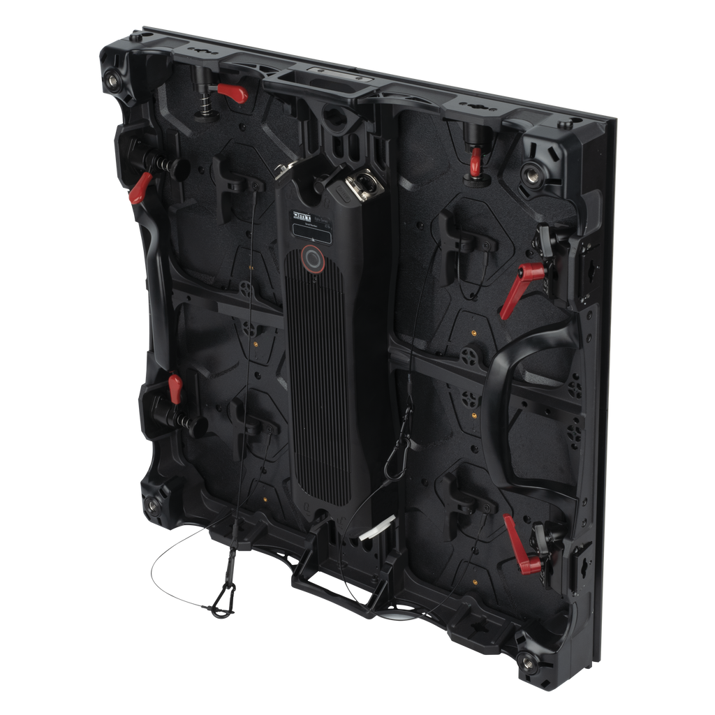 Due tipi di barre rigging separate permettono di appendere o impilare il pannello con assoluta semplicità. Con la Stacking Bracket, è possibile montare uno schermo impilato a una struttura truss o Layher in modo semplice e rapido. Le connessioni Power Pro e ProCat assicurano connettività dei dati e potenza sicure e robuste.