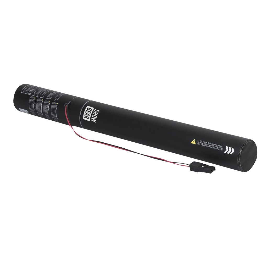 Il cannone elettrico Showgear è un cannone monouso, con coriandoli. Per sparare con un cannone elettrico è necessario il colpo Showtec FX (60908). La parte inferiore del cannone contiene una cartuccia di azoto pressurizzato per un potente effetto.