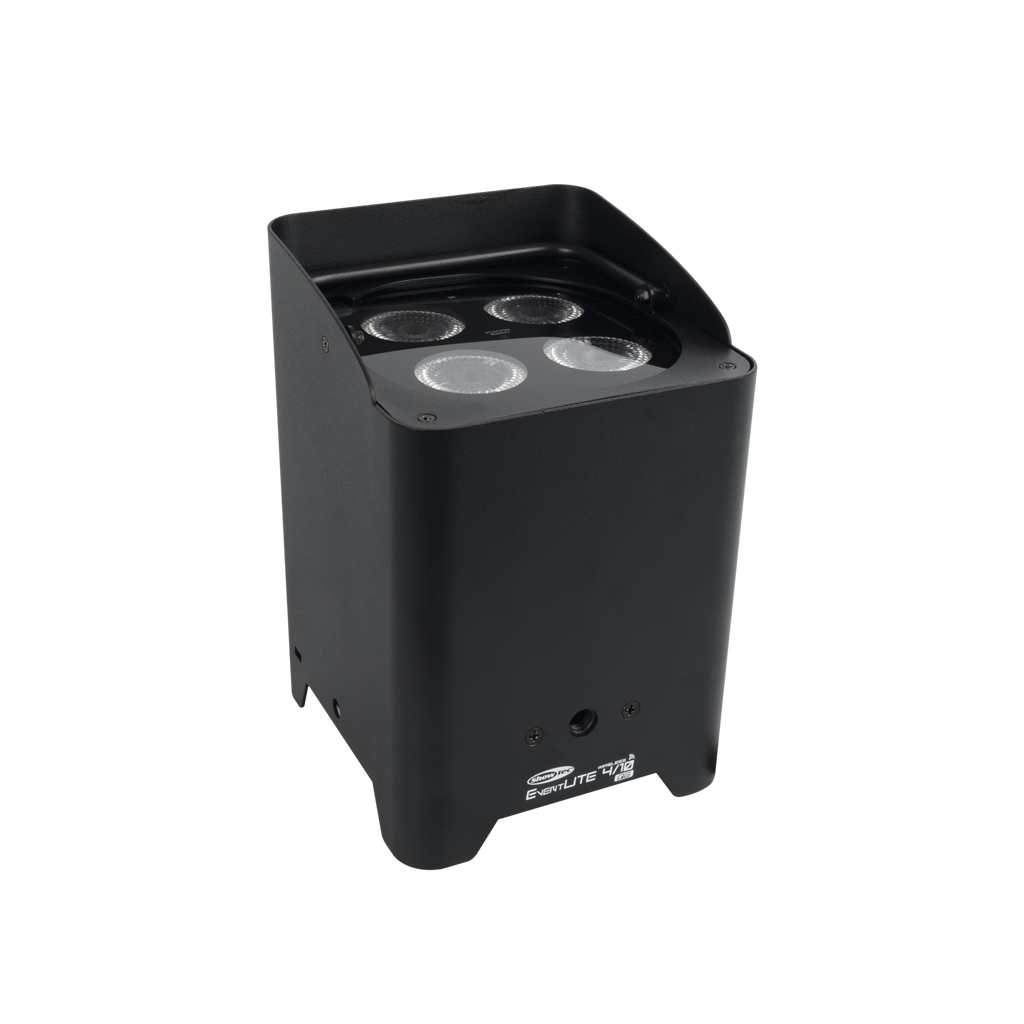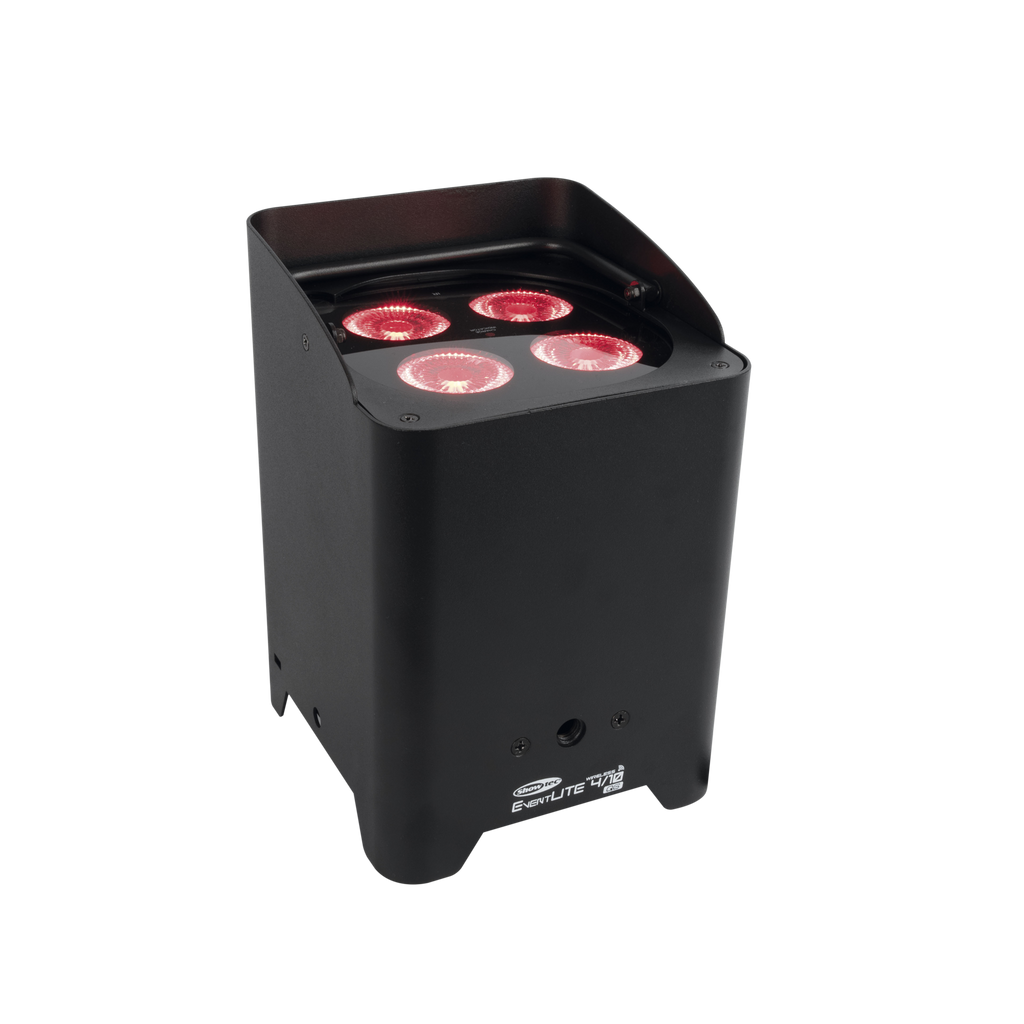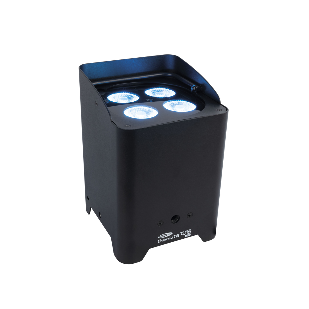 Lo Showtec EventLITE 4/10 Q6 è uno spot RGBWAUV a batteria con DMX wireless in un alloggiamento di alluminio resistente. Grazie alla batteria integrata e al DMX senza fili, non servono cavi. Se completamente carica, la batteria dura almeno 12 ore in modalità monocolore. Lo spot può essere inclinato di 25°, utile per illuminare una parete. L’EventLITE 4/10 Q6 è compatto, facile da trasportare e leggero. Include programmi automatici, può essere collegato a cascata in modalità master-slave (DMX cablato e wireless) e può essere personalizzato manualmente, tramite il controller remoto a infrarossi opzionale o il DMX (wireless).