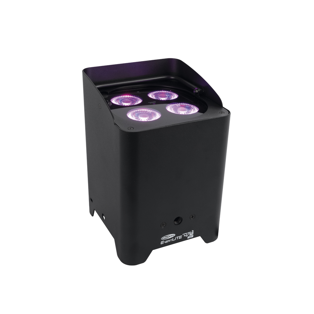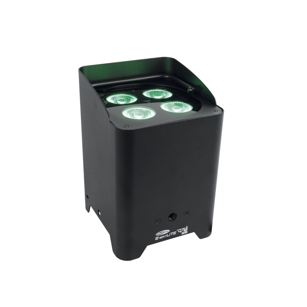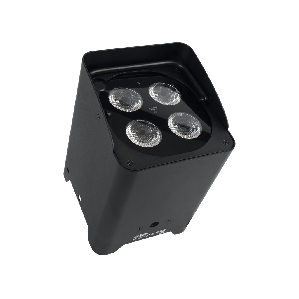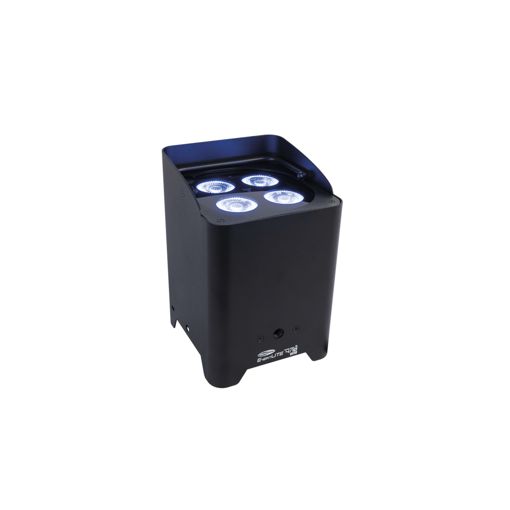 Lo Showtec EventLITE 4/10 Q6 è uno spot RGBWAUV a batteria con DMX wireless in un alloggiamento di alluminio resistente. Grazie alla batteria integrata e al DMX senza fili, non servono cavi. Se completamente carica, la batteria dura almeno 12 ore in modalità monocolore. Lo spot può essere inclinato di 25°, utile per illuminare una parete. L’EventLITE 4/10 Q6 è compatto, facile da trasportare e leggero. Include programmi automatici, può essere collegato a cascata in modalità master-slave (DMX cablato e wireless) e può essere personalizzato manualmente, tramite il controller remoto a infrarossi opzionale o il DMX (wireless).
