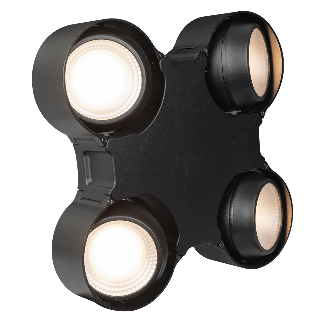 Il dispositivo Showtec Stage Blinder 4 LED è un accecatore da pubblico con 4 singoli portalampade. Ogni portalampada può essere controllato separatamente tramite DMX e contiene un LED COB da 80 Watt, Dual White. Si tratta della soluzione ideale per risparmiare energia dando al tempo stesso al palcoscenico un tocco decisamente... accecante.
