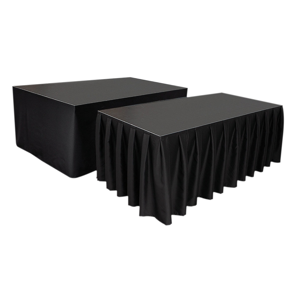 Questo bordo da palcoscenico non plissettata, di coloro nero può essere utilizzato per nascondere tutto ciò che il pubblico non dovrebbe vedere e conferisce a qualsiasi palcoscenico un aspetto pulito e ordinato. È realizzato in Molton CS, che è lo standard per la decorazione scenica. Ha una grammatura di 300 g/m² e una finitura opaca. Grazie alla densità superiore, blocca bene il passaggio della luce. Le tende Molton CS sono lavabili e ignifughe secondo la norma EN 13501-1 e sono realizzate al 100% in PES FR.
